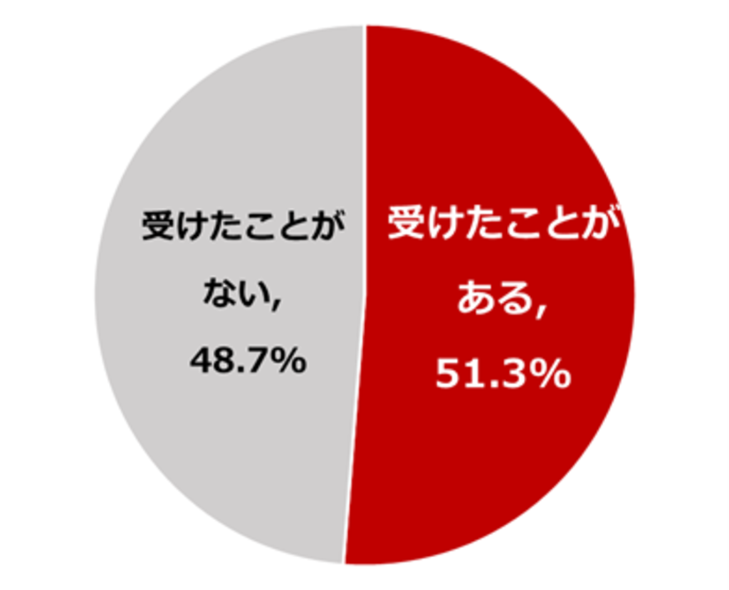 ※上記グラフ中「受けたことがある」は、「受けたことが無い」以外の回答数の割合