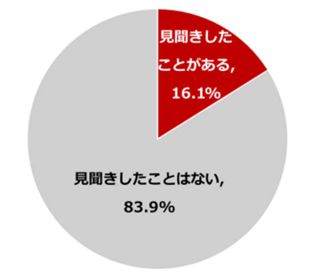 - 16%が同僚や上司のカスハラ加害を見聞きしたことがある