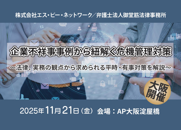 | 主催 | 株式会社エス・ピー・ネットワーク/弁護士法人御堂筋法律事務所 |