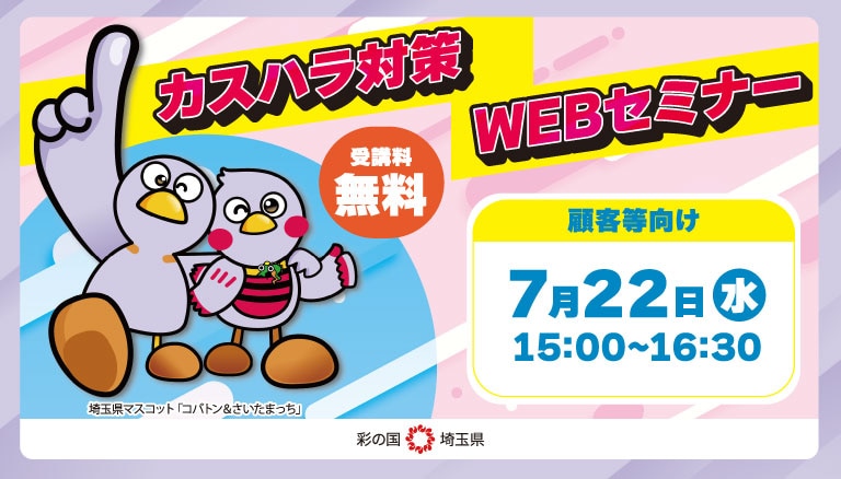 令和8年7月施行の「埼玉県カスタマーハラスメント防止条例」に関するWEBセミナーを実施いたします。